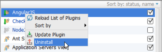 你也可以取消插件名称左侧的复选框来禁用插件。更极端,你可以通过右键的上下文,卸载已经安装的插件,注意,IDEA内置的插件是不能卸载(译者注:新版中卸载菜单会变成不可点)。