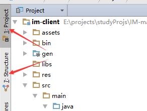 当工具窗口开启这种模式,其会与其他的工具窗口共享工具窗口栏。这样你就可以很轻松同时查阅两个(或以上)的工具窗口内容。正如下图所示,你可以很轻松地同时查阅项目结构和文件结构两个窗口内容:
